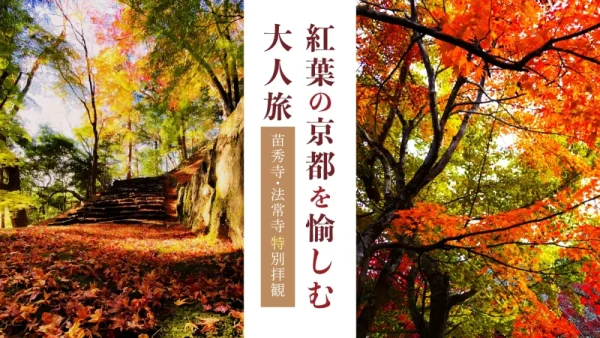 京都駅発着で、本記事でも紹介する穴場紅葉スポットの苗秀寺と大梅山法常寺の特別拝観と京都亀岡楽々荘での昼食をとる「紅葉の京都を愉しむ大人旅~苗秀寺・法常寺特別拝観」です。